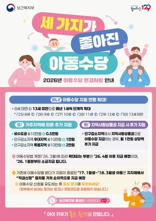 특히 올해는 법 개정에 따라 9세 미만 아동을 대상으로 1월분부터 소급 적용해 4월에 일괄 지급할 예정이다.