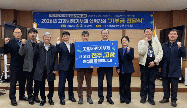 박생기 (재)고창식품산업연구원장은 “전주와 고창은 농생명 산업의 전략적 협력 파트너”라며 “양 기관의 상호 기부와 협력이 지역소멸 대응과 지속가능한 산업 생태계 조성에 기여하길 기대한다”고 밝혔다.