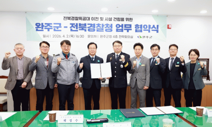 이날 협약식에는 유희태 완주군수, 전북경찰청 김철문 청장을 대신해 채정수 경비과장 등 주요 관계자들이 참석했으며, 기관 간 협력체계를 구축하고 사업의 원활한 추진을 위한 공동의 의지를 확인했다.