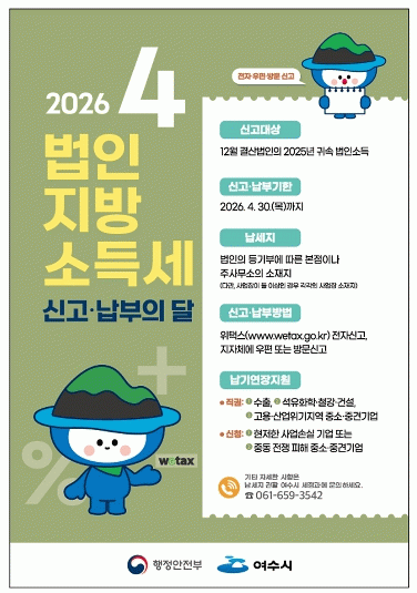 여수시 관계자는 “관내 법인과 세무대리인을 대상으로 안내문 발송 등 적극적인 홍보를 펼치고 있다”며, “신고 마감일에 예상되는 만큼 그 이전에 신고·납부를 당부드린다”고 말했다.