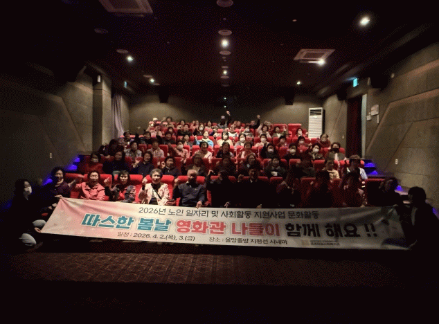 이번 문화활동은 평소 영화관 이용이 쉽지 않은 어르신들에게 문화 향유 기회를 제공하고, 노인일자리 참여를 통해 형성된 어르신 간 유대감을 더욱 강화하기 위해 마련됐다.