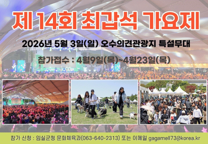 신청은 임실군청 문화체육과 방문 또는 이메일을 통해 가능하며, 접수된 참가자를 대상으로 4월 26일 예심을 거쳐 최종 12팀이 본선 무대에 올라 열띤 경연을 벌이게 된다.