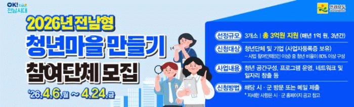 윤연화 전남도 인구청년이민국장은 “청년마을을 통해 청년이 지역에 안정적으로 정착하고, 창업과 일자리로 이어지는 선순환 구조를 만들겠다”고 말했다.