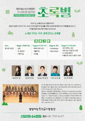광양시립소년소녀합창단은 이번 무대에서 지구 사랑과 환경보호의 메시지를 담아 관객들에게 실천의 중요성을 전할 예정이다.