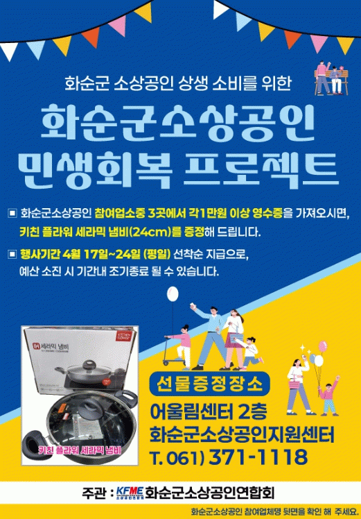 이번 프로젝트는 오는 4월 17일부터 26일까지 열리는 축제 기간에 맞춰 진행되며, 소상공인 참여업체 275개소 중 3개소에서 각각 1만 원 이상 구매한 이용객에게 선착순으로 세라믹 냄비를 증정하는 행사다.