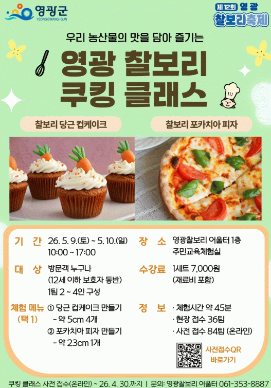 영광군 관계자는 “찰보리를 활용한 체험과 소비를 동시에 경험할 수 있는 이번 프로그램을 통해 지역 농산물의 가치를 널리 알리고자 한다”며 “많은 관광객과 군민들의 관심과 참여를 바란다”고 전했다.