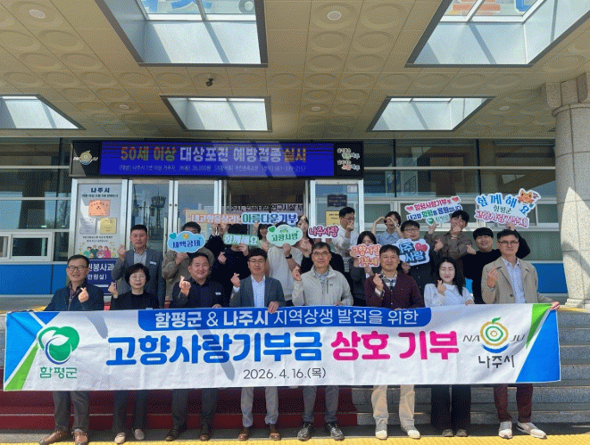 함평군은 “이날 함평군 건설교통과와 나주시 안전재난과 직원들이 고향사랑기부금을 상호 기부했다”고 16일 밝혔다.