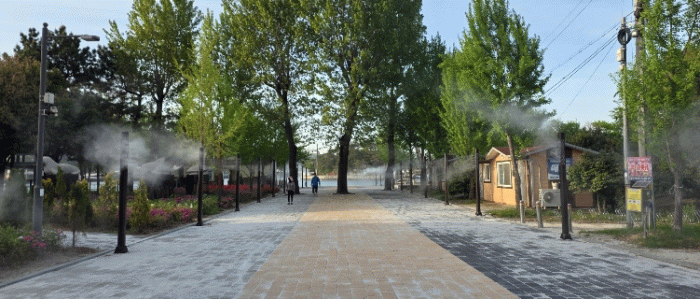 바닥분수와 증발냉방장치는 매일 낮 12시부터 오후 4시까지 가동되며, 펌프 과열을 막기 위해 1시간 가동 후 30분 쉬는 방식으로 운영된다.