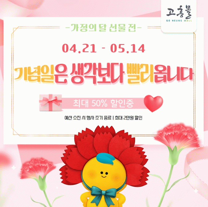 고흥몰 관계자는 “가정의 달은 다양한 기념일이 짧은 기간에 집중되는 만큼, 선물 준비 타이밍이 매우 중요하다”며 “이번 기획전을 통해 소비자들이 합리적인 가격으로 여유 있게 선물을 준비할 수 있기를 기대한다”고 말했다.