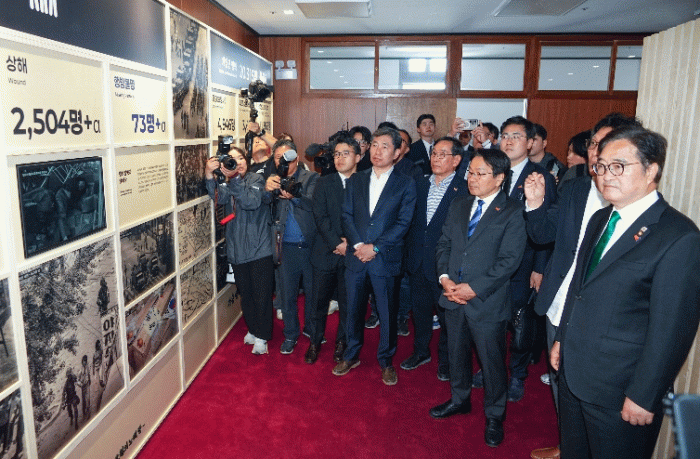 우원식 의장과 강기정 시장은 도청 본관 → 도경찰국 본관 → 상무관 순으로 50분가량 관람했다. 특히 경찰국 주제영상실과 상무관에서 항쟁 과정 및 희생자 시신 수습 과정을 주제로 한 영상을 시청하며 민주주의를 위해 희생한 이들을 기억했다. 또 도청 외벽, 도청 앞 은행나무 등에 새겨진 탄두 흔적 등을 주의 깊게 살펴봤다.