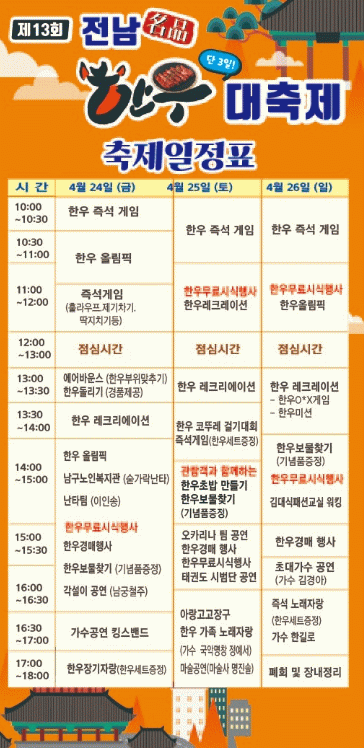 행사 기간 소비자는 전남에서 생산한 우수 한우고기를 정상가격보다 20%에서 최대 51% 저렴한 가격에 구매할 수 있으며, 다양한 할인행사와 시식행사도 함께 진행될 예정이다.