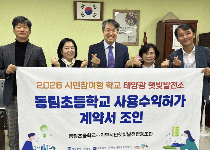 광주시교육청시민협치진흥원(이하 시민협치진흥원)은 지난 22일 동림초등학교 교장실에서 기후시민햇빛발전협동조합과 ‘탄소중립 실천 및 생태전환교육 활성화를 위한 학교 햇빛발전소 구축 업무협약’을 체결했다.