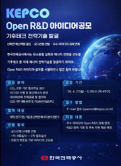 한전은 이번 공모를 통해 에너지 전환 과정에서 요구되는 핵심 기술을 선제적으로 확보하고, 기술개발 생태계를 확장함으로써 미래 에너지 산업 경쟁력을 지속적으로 강화해 나갈 계획이다.
