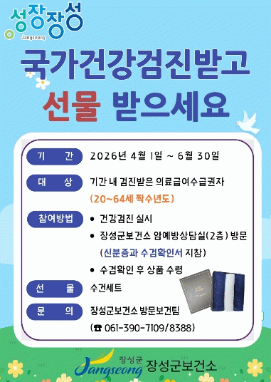 장성군보건소 관계자는 “이번 행사가 건강검진에 대한 많은 관심과 참여로 이어지기를 기대한다”고 말했다.
