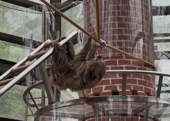 나무늘보는 대부분 나뭇가지 등에 발톱을 걸고 거꾸로 매달려 생활한다. 이에 우치동물원은 지상 5m 높이에 나무늘보가 자유롭게 매달리기 위한 줄을 설치, 관람객 머리 위로 나무늘보가 이동할 수 있도록 사육 공간을 조성했다.