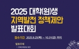 전라북도 클릭뉴스2025. 09.25[클릭뉴스] 전북특별자치도평생교육장학진흥원은 지역 발전에 대한 청년들의 관심과 참여를 높이기 위해 '2025년 대학(원)생 지역발전 정책제안 발표대회'를 개최한다고 24일 밝혔다. 이번 대회의 공모 주제는 △전북인재양성 △청년기회도시 조성 △학령인구 감소 및 지역소멸 대응 방안 등으로, 참가자는 이 중 한 가지를 선택해 정책 아이디어를 제안하면 된다. 참가는 개인 또는 2인 이내 팀 단위로 가능하며, 신청서는 진흥원 홈페이지 참고하여 신청하면 되며, 신청기간은 9월 25일부터 10월 31일 18시까지 이다. 심사는 1차 …