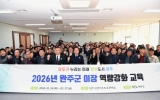 완주군 클릭뉴스2026. 02.27[클릭뉴스]완주군이 지역사회를 이끌어갈 핵심 리더들의 역량을 강화하기 위해 ‘2026 완주군 이장 역량강화교육’을 열었다. 지난 26일부터 1박 2일 동안 실시한 이번 연수는 지역사회에서 갈수록 역할이 증대되고 있는 이장들의 사기를 진작하고, 지역 내 핵심리더로서 리더십 강화와 지역사회 발전을 위한 소통 역량 강화를 위해 추진됐다. 특히, 변화하는 사회 환경 속에서 핵심 리더로서의 역할을 수행하는 데 필요한 다양한 프로그램이 마련됐다. 연수 첫날은 ▲오리엔테이션 및 마음열기 ▲군수 특강 ▲피지컬AI 활용 실무과정 ▲증강현…