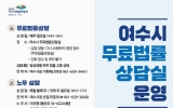 여수시 클릭뉴스2026. 01.12[클릭뉴스]여수시가 이달 1월부터 일상생활에서 법률문제로 어려움을 겪거나 피해를 본 시민에게 ‘무료 법률 상담’을 제공한다. 법률 접근이 어려운 시민들을 위해 전남 최초로 1999년부터 무료법률상담실을 운영해 왔으며, 올해도 변호사 5명과 법무사 5명을 무료법률상담관으로 위촉하고 실시한다. 여수시는 지난 2025년 한 해 총 559건의 법률 상담을 실시했다. 무료법률상담은 여수시민이면 누구나 이용할 수 있으며, 상담은 ▲부동산 ▲상속 ▲채권 ▲채무 ▲이혼 등 민사 문제를 비롯해 형사·가사뿐만 아니라 행정사건 관련 법률도 상담…