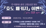 광주광역시 클릭뉴스2025. 09.17[클릭뉴스]광주시가 추석명절을 맞아 고향사랑기부로 ‘부모님 스마트 안부확인 서비스’를 신청한 기부자 100명에게 3만원 상당의 프리미엄 답례품을 추가로 제공한다. 광주광역시는 오는 10월12일까지 고향사랑기부제 참여를 독려하고 부모님 돌봄서비스 이용을 장려하기 위해 ‘추석맞이 효도패키지 이벤트’를 진행한다. ‘추석맞이 효도패키지’는 고향사랑기부제를 통해 광주시의 지정기부 사업중 ‘부모님 스마트 안부확인 서비스’에 10만원 이상 기부하고, 답례품으로 ‘생활형 돌봄서비스’를 선택하면 자동 응모된다. 기부자는 생활형 돌봄서비스로 ▲…