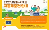 무안군 클릭뉴스2026. 01.09[클릭뉴스]무안군은 문화누리카드(통합문화이용권) 이용자 가운데 수급 자격을 유지한 대상자에게 별도의 신청 절차 없이 2026년도 지원금을 자동으로 충전해 주는 ‘자동 재충전 제도’를 시행한다고 밝혔다. 문화누리카드는 만 6세 이상 기초생활수급자와 차상위계층을 대상으로 문화예술·여행·체육 분야 이용을 지원하는 카드로, 무안군은 2026년 문화누리카드 지원금을 전년 대비 1만 원 인상해 1인당 15만 원을 지원할 계획이다. 다만, 만 13~18세 청소년기 대상자와 만 60~64세 생애전환기 대상자의 경우 추가 지원이 적용돼 1인당 …
