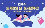 무주군 클릭뉴스2026. 04.10[클릭뉴스] 책의 도시 전주에서 도서관 주관의 날을 맞아 다채로운 독서문화 행사가 펼쳐진다. 전주시는 ‘제4회 도서관의 날’(4월 12일)과 ‘제62회 도서관 주간’(4월 12일~18일)을 맞아 전주지역 도서관에서 다양한 독서문화 행사를 운영한다고 10일 밝혔다. 도서관의 날과 도서관 주간은 ‘도서관법’ 제42조(도서관의 날)에 근거해 도서관에 대한 국민의 이해와 관심을 높이고 이용을 촉진하기 위해 시행된다. 이번 도서관 주간에는 시립도서관과 작은도서관 등 전주지역 총 50개 도서관이 참여해 특별행사와 전시, 특강, 공연…