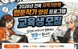 [클릭뉴스] (재)전북특별자치도 콘텐츠융합진흥원(이하 진흥원, 원장 김성규)은 전북 웹툰 산업의 미래를 이끌어갈 인재 발굴을 위해‘2026년 전북 웹툰작가 양성 프로그램’ 교육생 12명을 모집한다고 밝혔다. 본 프로그램은 잠재력 있는 지역 창작자들이 안정적인 환경에서 창작 활동에 전념하고, 실무 역량을 강화해 데뷔 및 연재로 이어질 수 있도록 지원하기 위해 마련됐다. 모집대상은 전북특별자치도에 거주하는 만 19세 이상의 예비·기성작가로, 데뷔를 준비 중이거나 차기작을 계획하고 있다면 지원 가능하다. 선발된 교육생에게는 …