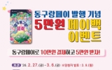 완도군 클릭뉴스2026. 02.24[클릭뉴스]광주 동구는 지역상권 활성화와 소비 촉진을 위해 동구 지역사랑상품권 ‘광주 동구랑페이’ 발행을 기념한 5만 원 페이백 이벤트를 추진한다고 밝혔다. 이번 이벤트는 오는 27일부터 오는 3월 6일까지 진행된다. 참여를 희망하는 주민은 이벤트 기간 내 동구랑페이 가맹점에서 동구랑페이카드로 10만 원 이상 결제한 뒤, 관련 영수증과 동구랑페이 실물 카드를 지참해 동구청 일자리경제과를 방문하면 응모할 수 있다. 참여자 가운데 총 100명을 추첨해 동구랑페이 선불카드 5만 원권을 지급할 예정이며 응모와 경품 수령은 1인 1회로 본…