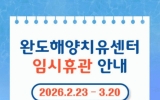 김제시 클릭뉴스2026. 02.24[클릭뉴스]완도해양치유센터가 더 나은 치유 서비스 제공과 환경 개선을 위해 2월 23일부터 3월 20일까지 임시 휴관에 들어간다. 센터는 그동안 조례에 지정된 임시 공휴일에도 이용객 편의를 위해 연중무휴로 운영해 왔으나 쾌적하고 안전한 치유 환경 조성을 위한 시설 개선이 필요함에 따라 임시 휴관하기로 했다. 로비와 퀴진의 인테리어 리뉴얼, 조명 시설 개선, 가구 재배치 등 시설물 점검과 환경 정비를 실시하고, 직원들을 대상으로 고객 응대, 프로그램 운영 방법, 안전 관리 등 역량 강화 교육도 진행할 계획이다. 완도해양치유센터는…