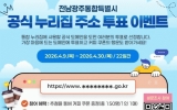 전라남도 클릭뉴스2026. 04.09[클릭뉴스]전라남도와 광주광역시는 전남광주통합특별시 출범에 앞서 누리집 주소 선정을 위한 대국민 선호도 조사를 한다고 밝혔다. 누리집 주소는 통합특별시의 정체성을 좌우하는 핵심 요소인 만큼, 국민 인식을 반영해 브랜드를 구축하겠다는 방침이다. 누리집 주소 후보는 ▲두 지역명을 모두 표기한 ‘jeonnamgwangju.go.kr’, ‘jeonnam-gwangju.go.kr’ ▲앞 글자를 조합한 ‘jngj.go.kr’, ‘jn-gj.go.kr’, ‘jg.go.kr’, ▲통합 의미를 강조한 ‘jgunion.go.kr’ ▲하나의 도시 …