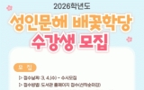 군산시 클릭뉴스2026. 02.23[클릭뉴스]전라남도교육청나주도서관(관장 김의곤)은 오는 3월 24일부터 성인 학습자의 기초 문해 역량을 강화해 삶의 질을 높이고 지역사회 참여를 확대하기 위해 성인문해 배꽃학당을 운영한다. 수강 신청은 3월 4일부터 시작되며, 교육 희망자는 전라남도교육청나주도서관 홈페이지를 통해 신청할 수 있다 성인문해 교육과정은 △초급반(초1~2학년)과 △고급반(초5~6학년)의 2개 과정으로 나누어 운영되며, 학습자의 기초 역량과 이해도를 고려한 맞춤형 수업을 통해 기초 문해력부터 심화 학습까지 균형 있게 지원할 방침이다. 아울러, 체험…
