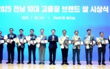 전라남도 클릭뉴스2025. 07.30[클릭뉴스]전라남도는 30일 도청 왕인실에서 국민 밥상을 넘어 세계 밥상까지 든든하게 채워줄 2025년 전남 10대 고품질 브랜드 쌀 시상식을 개최했다. 시상식에는 김영록 전남도지사와 이광일 전남도의회 부의장, 김성모 농협전남본부 부본부장, 시군과 농협 관계자 등 100여 명이 참석했다. 행사는 고품질쌀 생산 농협RPC 브랜드마다 특색있는 테마로 제작한 홍보영상 상영, ‘OK! 지금은 전남쌀 세계로!’ 주제의 퍼포먼스 등 다채로운 프로그램으로 진행됐다. 전남쌀의 우수성을 알리고, 고품질 브랜드 쌀 생산을 위해 힘쓴 농가와 관…
