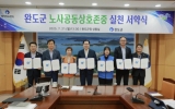 완도군 클릭뉴스2025. 07.23[클릭뉴스]완도군은 지난 21일 완도군 공무원 노동조합, 공공연대노동조합 완도지부, 5급 이상 간부 공무원과 함께 ‘노사 공동 상호 존중 실천’ 서약식을 가졌다. 참석자들은 건강하고 행복한 조직 문화를 위한 직장 내 괴롭힘 및 갑질 근절 결의문에 대해 서약하고, 공동 노력하기로 했다. 서약의 주요 내용은 직장 내 괴롭힘 예방을 위한 노력, 안전한 근무 환경 조성, 직원 간 상호 존중·소통 문화 조성 등이 담겨 있다. 군에서는 ▲동료 간 존중하는 언어 사용하기 ▲나의 일 미루지 않기 ▲사생활 존중하기 ▲불편한 회식 문화 강요하지…