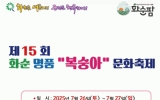 화순군 클릭뉴스2025. 07.22[클릭뉴스]화순군이 화순복숭아연합회영농조합법인 주관으로 26일부터 27일까지 2일간 하니움문화스포츠센터에서 제15회 화순 명품 복숭아 축제를 개최한다. 화순 명품 복숭아 축제는 화순군의 대표적인 여름 농산물인 복숭아의 우수한 맛과 품질을 널리 알리기 위해 매년 개최하는 행사이다. 성황리에 개최된 제14회 복숭아 품평회가 많은 관심과 호응을 얻으면서, 올해 역시 높은 기대 속에 열리게 됐다. 축제는 26일 관광객 놀이마당을 시작으로 복숭아 깎기, 복숭아 패션쇼, 복숭아 가요제 등 다양한 행사가 준비되어 있다. 개막식에서는 …