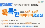 진도군 클릭뉴스2026. 04.06[클릭뉴스] 광양시는 시민의 창의적인 의견을 시정에 반영하고 소통 중심 행정을 강화하기 위해 ‘2026년 톡톡(talk)한 아이디어 공모전’을 실시한다고 밝혔다. 이번 공모전은 ‘시정 발전을 위해 국민의 아이디어가 필요한 분야’를 주제로 진행되며, 대한민국 국민 누구나 참여할 수 있다. 접수 기간은 4월 6일부터 4월 24일까지다. 공모 분야는 ▲전남·광주 통합특별시 시대에 대응하는 선제적 전략 및 정주 여건 개선 방안 ▲일상의 불편과 효율을 개선하는 생활혁신 아이디어(복지·안전·교통·환경 등) ▲소상공인 및 골목경제 활성화와 …