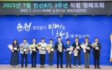 순천시 클릭뉴스2025. 07.03[클릭뉴스]순천시는 지난 2일, 7월 직원 정례조회에 앞서 시 직원들을 대상으로 2025년도 상반기 적극행정 우수사례에 대한 시상식을 개최했다고 밝혔다. 이번 경진대회에는 총 25건의 사례가 접수됐으며, 이 가운데 창의적이고 능동적인 문제 해결과 시민 불편 해소에 기여한 10건의 우수사례가 최종 선정됐다. 시는 적극행정 문화를 더욱 확산시키기 위해 올해 우수사례 선정 건수와 포상금 규모를 전년보다 확대했다. 최우수상은 첨단산업과 최국일 팀장이 수상했다. ‘순천만잡월드, 어린이의 꿈을 다시 열다’ 사례는 순천만잡월드의 직…
