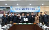 장수군 클릭뉴스2025. 12.26[클릭뉴스]장수군은 군청 2층 회의실에서 전국공공운수노조 전국자치단체공무직본부 장수군지부(지부장 윤동수, 이하 ‘장수군 공무직지부’)와 2025년 임금협약을 체결했다고 26일 밝혔다. 이날 협약식에는 최훈식 장수군수를 비롯한 노사 양측 교섭위원 11명이 참석했으며 협약서 서명을 통해 장수군 공무직지부와 2025년·2026년 임금협약을 확정했다. 이번 협약은 올해 7월부터 노사 간 상견례, 실무교섭 등을 거쳐 추진됐으며 상호 신뢰와 존중을 바탕으로 합리적인 합의를 도출한 점에서 의미가 크다. 주요 협약 내용은 기말상여금 …