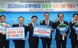 익산시 클릭뉴스2025. 12.24[클릭뉴스](재)2026여수세계섬박람회조직위원회는 지난 24일, 수협중앙회와 섬박람회 성공개최를 위한 1억 원 규모의 입장권 구매약정을 체결했다고 밝혔다. 이번 약정은 해양수산 분야를 대표하는 수협중앙회가 섬박람회 취지에 공감하며 체결됐다. 앞서 지난 11일 여수 지역 해양수산 분야 11개 단체가 입장권을 구매한 데 이어 전국 단위로 섬박람회 지지와 참여가 확대되고 있다. 노동진 수협중앙회 회장은 “섬박람회는 대한민국 해양‧섬의 가치와 미래를 알리는 뜻깊은 행사다”며, “수협중앙회도 해양수산을 대표하는 기관으로서 섬박람회 성…