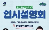 군산시 클릭뉴스2026. 02.12[클릭뉴스]군산시가 변화하는 대입 정책과 고교학점제에 대한 학생·학부모의 이해를 돕기 위해 21일 오후 2시 동우아트홀에서 ‘2027학년도 입시설명회’를 개최한다. 이번 설명회는 관내 중·고등학생과 학부모를 대상으로 최신 입시 흐름을 이해하고 실질적인 진학 전략을 수립할 수 있도록 지원하기 위해 마련됐다. 설명회에서는 EBS 대표 입시 강사이자 현직 교사인 정제원 강사가 다년간의 학교 현장 경험과 입시 분석 노하우를 바탕으로 ▲대입 제도 전반의 이해 ▲고교학점제 실전 적용법 ▲성공적인 진로·진학 전략 포인트 등을 이해하기 쉽게 …