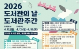 여수시 클릭뉴스2026. 03.30[클릭뉴스] 여수시는 ‘도서관의 날’을 맞아 오는 4월 12일부터 18일까지 ‘도서관 속 작은 펼침, 세상을 여는 큰 열림’을 주제로 ‘도서관주간’ 독서문화 행사를 운영한다고 밝혔다. 이번 행사는 시립도서관 이순신·쌍봉·현암·돌산·소라·율촌 등 시립도서관 6개관에서 공연·강연·전시 등 총 13개의 다양한 프로그램을 마련했다. 도서관별 주요 내용으로 ▲이순신도서관 ‘그림책 뮤지컬 ‘나쁜 말 먹는 괴물’‘ ▲쌍봉도서관 ’전라남도 올해의 책 ‘오찬호 작가와의 만남’‘ ▲현암도서관 ’독서 권장 마술 공연 ‘책 읽는 마법사’‘ ▲돌산도서…