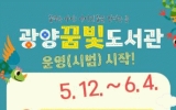 임실군 클릭뉴스2025. 05.08[클릭뉴스]광양시는 오는 5월 12일부터 ‘광양꿈빛도서관’을 시범 운영한다고 8일 밝혔다. 시는 정식 개관에 앞서 시민들이 공간과 주요 서비스를 미리 체험할 수 있도록 시범 운영 기간을 두고, 시설과 운영 시스템 전반을 점검할 계획이다. 광양꿈빛도서관은 마동근린체육공원 인근(무등길 97)에 위치한 연면적 1,440.03㎡, 지상 2층 규모의 어린이 전용 도서관이다. 1층에는 자율 창작공간 ‘꿈뜨락’과 교과 연계 도서 및 학습만화 공간이, 2층에는 다목적 열린 교육 공간 ‘책뜨락’과 어린이 동화 및 그림책 공간이 마련돼 있다…