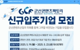 군산시 클릭뉴스2025. 05.08[클릭뉴스]군산시가 콘텐츠 산업 분야 창업자를 육성‧지원하기 위해 콘텐츠팩토리 입주기업을 신규 모집한다. 모집 기간은 오는 5월 19일부터 5월 23일까지로 대상은 캐릭터, 웹툰, 애니메이션, 게임, 영상, 소프트웨어 등 콘텐츠 산업 분야 예비 창업가 및 창업 5년 이내 기업이다. 입주를 원하는 기업은 군산시 누리집 고시 공고 또는 군산콘텐츠팩토리 누리집 공지 사항에 게시된 입주신청서를 작성하여 콘텐츠팩토리(해망로146-24) 3층 운영지원실로 방문하거나, 전자우편으로 접수하면 된다. 선정된 기업은 저렴한 임대료로 전용 사무…