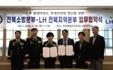 전라북도 클릭뉴스2026. 03.27[클릭뉴스]전북특별자치도소방본부(본부장 이오숙)는 26일 도청 17층 소방작전실에서 LH 전북지역본부와 노후 임대아파트 화재안전망 확보를 위한 업무협약을 체결했다고 밝혔다. 이번 협약은 노후 임대아파트에 거주하는 아동, 노인, 장애인 등 화재안전취약계층의 주거 안전을 강화하고, 화재 발생시 보다 신속한 대피가 가능하도록 하기 위해 마련됐다. 이날 협약식에는 전북소방본부에서 이오숙 소방본부장과 119대응과장, 예방안전과장 등이 참석했으며, LH 전북지역본부에서는 송영환 전북지역본부장과 주거복지사업처장, 임대자산관리팀장 등이 함께했…