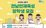화순군 클릭뉴스2025. 04.25[클릭뉴스]화순군은 4월 21일부터 5월 9일까지 '2025년 상반기 전남인재육성 3개 분야 장학생 신청을 인구청년정책과 평생교육팀에서 접수한다고 밝혔다. 전남인재육성 장학생 선발은 (재)전남인재평생교육진흥원에서 운영하며, 신청 자격은 학생 본인 또는 보호자(부 또는 모)가 공고일 현재 1년 이상 전남도 내에 주소를 둔 초등학생부터 대학생이다. 올해 장학생 선발 신청·접수는 희망하는 장학금 종류에 따라서 2곳 중 선택하여 접수하면 된다. 진흥원이 직접 선발하는 분야는 (재)전남인재평생교육진흥원 홈페이지에 온라인으로 접수하고,…