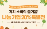 곡성군 클릭뉴스2025. 04.24[클릭뉴스]곡성군는 곡성군 온라인 쇼핑몰인 ‘곡성몰’에서 관내 아이들을 정기적으로 후원하는 입점 업체를 대상으로 4월 24일부터 29일까지 6일간‘나눔 기업 20% 특별전’을 추진한다고 전했다. 곡성몰은 매월 특별한 주제로 기획전을 선보이고 있으며, 이번 행사에서는 쌀, 한우․한돈, 장어 등 총 41개 업체의 256개 품목이 20% 할인된 가격에 판매될 예정이다. 이를 통해 소비자들은 품질이 좋은 다양한 상품을 합리적인 가격에 만나볼 수 있다. 곡성군의 지원으로 운영되는 곡성몰은 소비자들에게 고품질 지역 특산품을 합리적인 가격에…