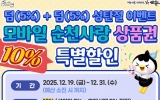 순천시 클릭뉴스2025. 12.17[클릭뉴스]순천시는 연말 소비 진작과 지역경제 활성화를 위해 오는 19일부터 31일까지 ‘모바일 순천사랑상품권 크리스마스 특별 할인 행사’를 진행한다고 밝혔다. 이번 행사는 선할인 5%와 후(後) 캐시백 5%를 더한 총 10% 할인 혜택을 제공한다. 시민들은 모바일 순천사랑상품권을 구매하는 즉시 5% 선할인을 받고, 사용 후 추가로 5% 캐시백 혜택을 누릴 수 있다. 특히 캐시백 5%는 국비 지원 사업으로 추진되는 만큼 예산 소진 시 조기 종료될 수 있어, 시민들의 빠른 참여가 필요하다. 시는 이번 행사가 크리스마스와 …