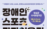 임실군 클릭뉴스2026. 02.06[클릭뉴스]임실군은 지난 3일부터 장애인의 스포츠 참여 기회를 확대하기 위해 2026년 장애인 스포츠 강좌이용권 수시모집을 실시한다고 밝혔다. 이번 수시모집은 지난해 11월 진행된 정기모집 이후 신청하지 못한 장애인을 대상으로 마련됐으며, 정기모집 이후에도 신청이 가능하도록 접수 기간을 확대해 운영한다. 지원 대상은 '장애인복지법'에 따른 등록 장애인(5세~69세)으로, 선정된 이용자는 월 최대 11만 원 한도 내에서 스포츠강좌 수강료를 연중 지원받을 수 있다. 특히 장애인의 원활한 강좌 이용을 위해 보호자의 동반 참여가 필…
