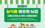김제시 클릭뉴스2025. 12.17[클릭뉴스]김제시는 취약계층의 식품 접근성을 강화하기 위해 “2026년 농식품바우처 사업”을 추진해 지속가능한 농식품 소비 체계와 시민 먹거리 안전망을 구축할 계획이라고 밝혔다. 2026년 농식품 바우처 사업대상은 중위소득 32% 이하 생계급여 수급 가구 중 기존 임산부, 영유아, 청소년 포함 가구에 34세 이하 청년가구(1992. 1. 1. 이후 출생자)까지 확대돼 보다 많은 취약계층이 혜택을 받을 수 있게 됐다. 또한, 사업 기간도 작년 대비(‘25년, 3~12월) 2개월 확대된 1월부터 12월까지 연중 추진됨에 따라 농식품…
