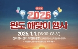 충북 클릭뉴스2025. 12.17[클릭뉴스]완도군은 내년 1월 1일 오전 6시 30분부터 8시 30분까지 신지 명사십리 이벤트 광장에서 ‘병오년(丙午年) 해맞이 행사’를 개최한다. 행사는 붉은 말의 해 병오년을 맞아 군민과 관광객이 함께 새해의 힘찬 출발을 다지고, 한 해 소망을 기원하기 위해 마련됐다. 이날 ▲새해 풍물 길놀이 ▲희망 콘서트 ▲신년 타고 ▲대형 볼에 새해 소망 적기 ▲신년 화두 모래 조각 포토존에서 사진 촬영 ▲새해 떡국 나눔 등이 진행될 예정이다. 우리나라 대표 웰니스 관광지인 완도해양치유센터(신지면 해양치유길100)에서는 새해를 맞아 군…