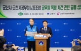 담양군 클릭뉴스2025. 03.18[클릭뉴스]최근 군산시가 민원행정 과정에서 폭력 등 불상사가 잇따르자 강임준 군산시장과 군산시 공무원노동조합이 공동으로 대시민 호소에 나섰다. 18일 강임준 시장과 박덕하 노조위원장은 기자회견을 열고, 최근 공무원 폭행사건에 대해 깊은 우려와 유감을 표하며 엄정한 수사를 촉구하는 공동 성명서를 발표했다. 지난 7일 발생한 이번 사건은 작년에 수해피해를 입은 A씨의 민원을 도와주기 위해 현장에 방문했다가 공무원이 폭행당한 사건으로 현재 군산경찰서에서 조사 진행 중이다. 성명서에서 군산시는 이번 폭력 사건을 심각하게 받아들이…