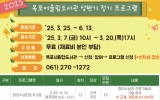 [클릭뉴스]목포어울림도서관은 3월부터 6월까지 4개월 동안 상반기 정기프로그램 8개를 개설해 주야간 및 특강으로 나누어 다채롭게 운영한다. 이번 상반기 성인 프로그램은 ▲정리수납전문가 2급(주간) ▲하모니카(주간) ▲힐링 손뜨개(주간) ▲캘리그래피(야간) ▲보태니컬 색연필화(야간) ▲세계 명차의 이해(야간) 및 특강 ▲이순신의 리더십 우리아이에게 어떻게 적용할 것인가? 이며, 초등학생 대상 ▲생각을 키워주는 독서 논술 프로그램으로 다채롭게 구성되어 있다. 참여는 7일부터 20일까지 목포시통합도서관 누리집를 통해 무료로 신청할 수…